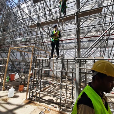 تشمل جميع أنواع الهياكل الفولاذية المؤقتة والسقالات، بما في ذلك التصميم، والتركيب، والتخصيص، وأعمال البنية التحتية